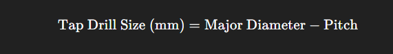 | Thread (Metric) | Pitch (mm) | Tap Drill (mm) |